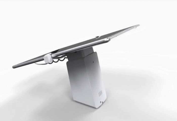 ST系列外形设计采用白色ABS+PC,整体外观简洁、线条感强。此系列特增设卡爪,可给平板防盗,红外解码方案,具有二次防盗报警功能,内置拉线设计,提供伸缩线缆模块更换,可附加爪子和托锁定功能,以满足不同防盗等级展示需求。